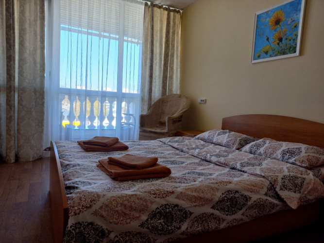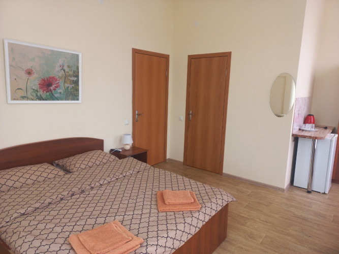 Все номера с видом на море. В номере есть телевизор, кондиционер, холодильник, кружки, чайник, сейф, постельное белье, полотенца, плед , подушки антиаллергенные, удобный матрас. В каждом номере есть собственная ванная комната. Гостям предоставляются бесплатные туалетно-косметические принадлежности. На первом этаже есть микроволновка, утюг с гладильной доской, фен по требованию у администратора. Замена постельного белья раз в три дня согласно стандартам.